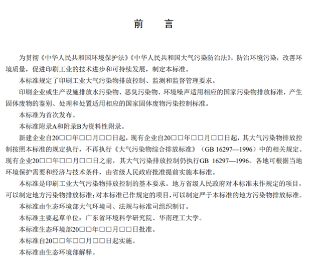 3.《印刷工業(yè)大氣污染物排放標準(征求意見稿)》編制說明