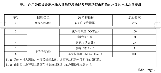 戶用處理設(shè)備出水排入其他環(huán)境功能及環(huán)境功能未明確的水體的,執(zhí)行下圖的出水水質(zhì)要求:
