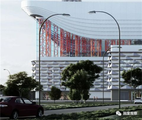 建筑形式所反映的內核,是對清潔能源轉換的開放性以及對機械與工業(yè)美學的自信。建筑起翹的一角,透出垃圾焚燒電廠內部的紅色構件,體現(xiàn)了一種開放的態(tài)度,把內部的焚燒發(fā)電流程如同盛裝揭幕一般展示出來,體現(xiàn)出工業(yè)建筑對清潔能源處理的自信。