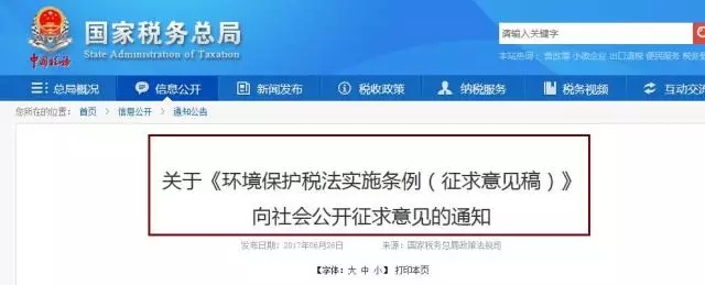 2016年12月25日十二屆全國(guó)人大常委會(huì)第二十五次會(huì)議通過(guò)了《中華人民共和國(guó)環(huán)境保護(hù)稅法》,自2018年1月1日起施行。為保證稅法順利實(shí)施,財(cái)政部、國(guó)家稅務(wù)總局、環(huán)境保護(hù)部近日發(fā)布了《中華人民共和國(guó)環(huán)境保護(hù)稅法實(shí)施條例(征求意見(jiàn)稿)》。