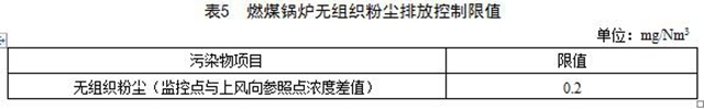 4.5 燃煤鍋爐配套堆場應(yīng)采取封閉措施,燃煤鍋爐房無組織粉塵濃度執(zhí)行表5的規(guī)定。