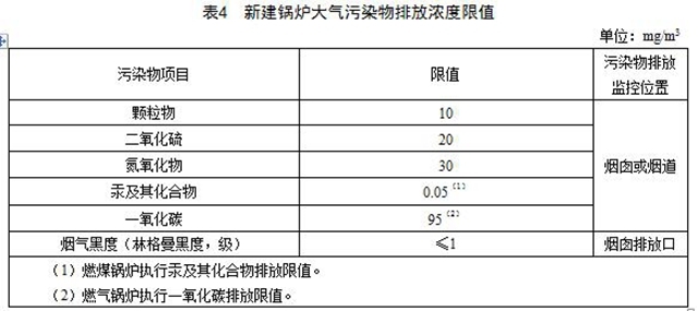 4.4 新建鍋爐執(zhí)行表4中的大氣污染物排放限值。