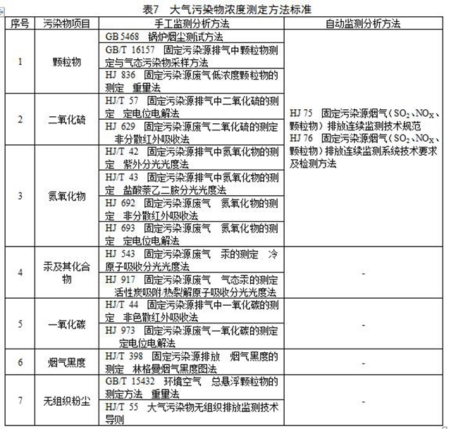 5.1.6 對大氣污染物排放濃度的測定采用表7列的方法標(biāo)準(zhǔn)。