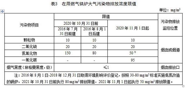 4.3 在用燃?xì)忮仩t執(zhí)行表3中的大氣污染物排放限值。