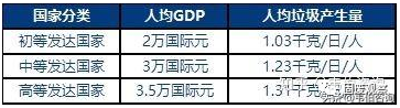 根據(jù)該模型,按總人口計算,在初等發(fā)達國家水準(人均GDP達到2萬國際元),人均垃圾產(chǎn)生量為1.03千克/日/人;在中等發(fā)達國家水準(人均GDP達到3萬國際元),人均垃圾產(chǎn)生量為1.23千克/日/人;高等發(fā)達國家水準(人均GDP達到3.5萬國際元),人均垃圾產(chǎn)生量為1.31千克/日/人。