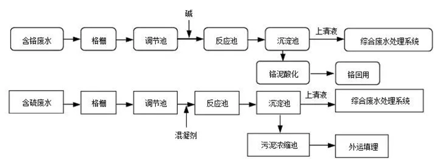 含鉻廢水:指在鉻鞣及鉻復(fù)鞣工序中產(chǎn)生的廢鉻液及相應(yīng)的水洗工序廢水。