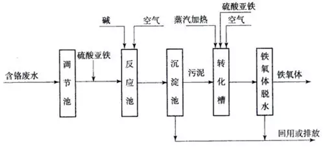 氣浮法:氣浮法用于處理鍍鉻廢水的原理是:在酸性的條件下硫酸亞鐵和六價鉻進行氧化還原反應(yīng),然后在堿性條件下產(chǎn)生絮凝體,在無數(shù)微細氣泡作用下使絮凝體浮出水面,使水質(zhì)變清。