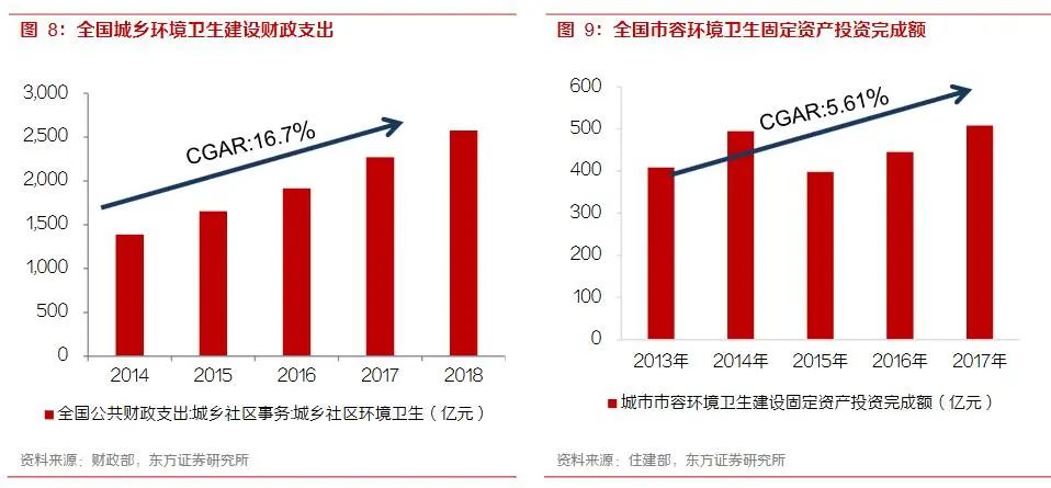 2.1量價(jià)齊升,環(huán)衛(wèi)財(cái)政支出增速達(dá)16.7%