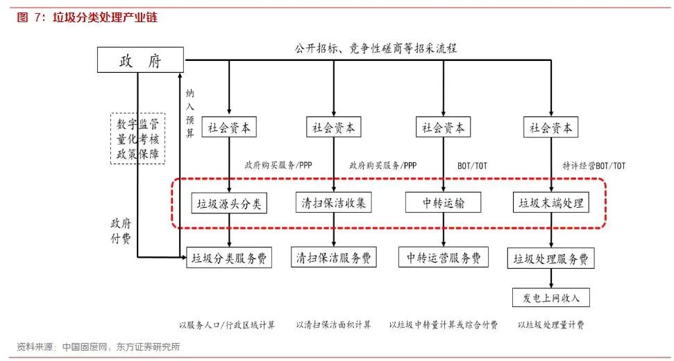 2019年,我國開始全面進(jìn)入垃圾分類的時代,在環(huán)衛(wèi)一體化發(fā)展趨勢下,垃圾分類為環(huán)衛(wèi)業(yè)務(wù)引入了更多元素,橫向上主要體現(xiàn)在服務(wù)內(nèi)容的增加,如前端物業(yè)管理、垃圾分類的運(yùn)營、中端分類收運(yùn)、中轉(zhuǎn)站升級等。在縱向上主要體現(xiàn)在分類后新的垃圾品種帶來的處理或利用需求,主要包括廚余垃圾、餐廚垃圾、大件垃圾、裝修垃圾等的資源化利用或處理以及可回收物的回用等。