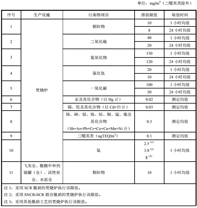 8.1.1 自2023年1月1日起,現(xiàn)有生活垃圾焚燒廠有組織廢氣中污染物濃度執(zhí)行表2中規(guī)定的限值。