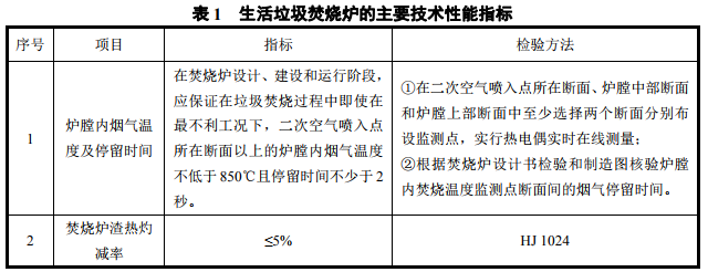 (1)爐膛內(nèi)煙氣溫度及停留時(shí)間、焚燒爐渣熱灼減率應(yīng)滿(mǎn)足表1的要求。