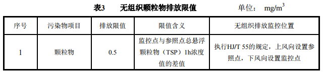 自本標(biāo)準(zhǔn)實(shí)施之日起,生活垃圾焚燒廠大氣污染物無(wú)組織顆粒物排放監(jiān)測(cè)點(diǎn)濃度限值應(yīng)符合表3規(guī)定。