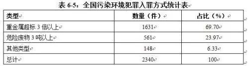 為此,報告指出,污染環(huán)境犯罪入罪方式集中化,重金屬超標成為污染環(huán)境犯罪的罪魁,這也是當前環(huán)境刑事司法的重要特征,需引起高度關注。