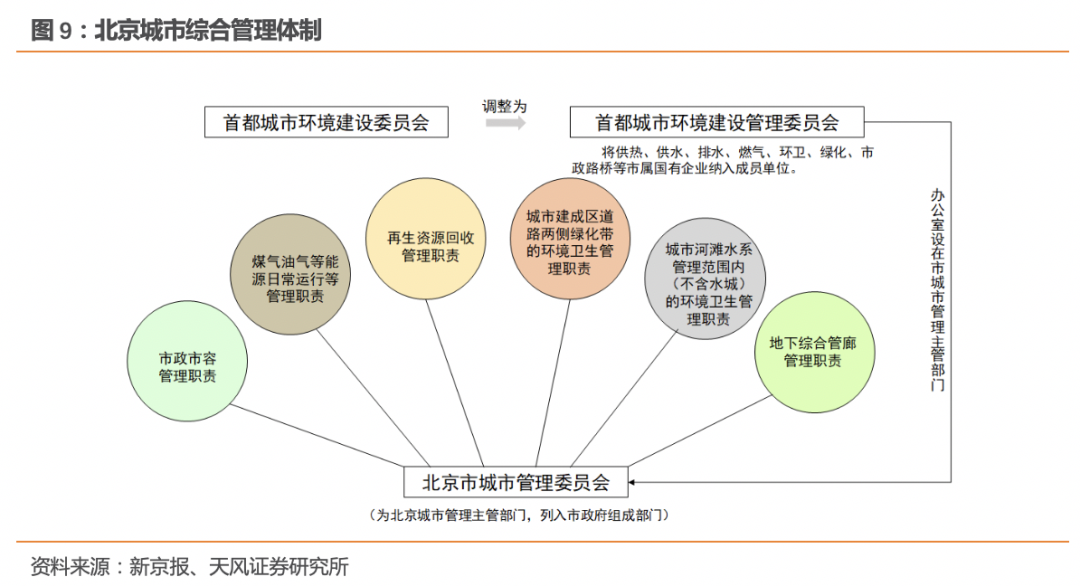 2.3.2. 業(yè)務(wù)范圍向城市物業(yè)管理方向發(fā)展城市綜合管理將有助于環(huán)衛(wèi)項目向一體化方向發(fā)展,綠化養(yǎng)護、照明維護等更多內(nèi)容被打包進來,環(huán)衛(wèi)企業(yè)面臨的市場空間逐步擴容。2020年一季度疫情期間,各地環(huán)衛(wèi)企業(yè)承擔(dān)了臨時的消毒消殺工作,工作量提升至平時兩倍,環(huán)衛(wèi)一線工人作為城市綜合管理的預(yù)備軍,將在未來承擔(dān)更多城市管理的職能。- 城市綜合管理服務(wù)案例——北京通州環(huán)衛(wèi)一體化項目