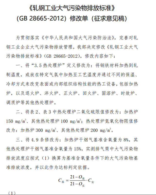 4.《軋鋼工業(yè)大氣污染物排放標(biāo)準(zhǔn)》(GB 28665-2012)修改單(征求意見(jiàn)稿)