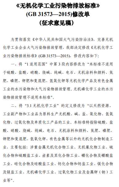 無機(jī)化學(xué)工業(yè)污染物排放標(biāo)準(zhǔn)修改單(征求意見稿)