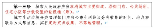 為了實(shí)現(xiàn)垃圾分類指前端公眾的“定時(shí)定點(diǎn)”投放必須與中端“定時(shí)定點(diǎn)”收運(yùn)緊密銜接,避免因?yàn)殂暯硬粫硨?dǎo)致的百姓不信任,分類效果打折扣的情況出現(xiàn),山西省垃圾分類文件明確對(duì)生活垃圾實(shí)施“不落地管理”,提出在主要街道、沿街門店、公共場(chǎng)所及住宅小區(qū)等地撤除分散設(shè)置的垃圾桶。
