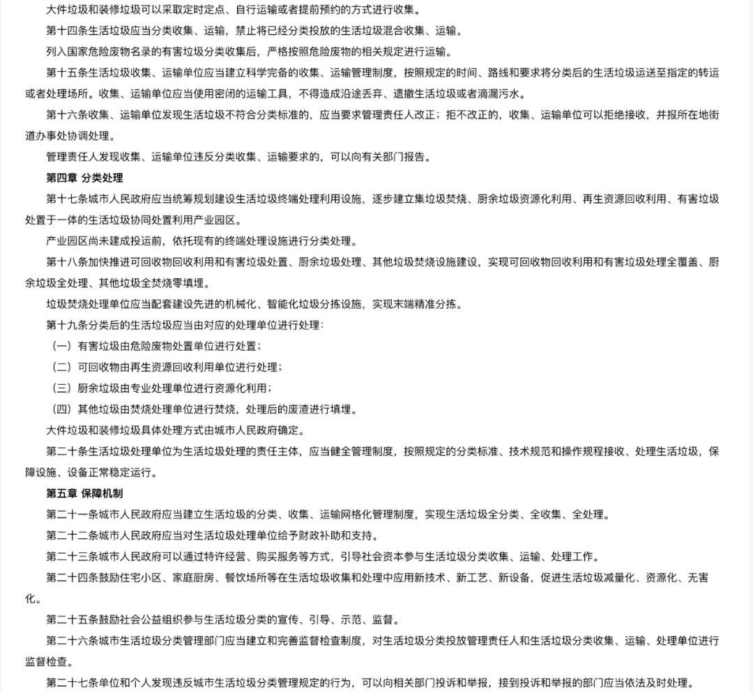 但在全省范圍內(nèi)來(lái)看,多數(shù)地級(jí)市固廢處理“本底值”水平較弱,暫未建立完善的分類垃圾處理設(shè)施體系,靜脈產(chǎn)業(yè)園規(guī)劃多數(shù)仍未開(kāi)展。因此本規(guī)定考慮到各地實(shí)際情況,結(jié)合垃圾分類最“底層”的初心要求——提高無(wú)害化水平,對(duì)暫無(wú)條件的地區(qū)以現(xiàn)有處置設(shè)施為基準(zhǔn),在加快建立完善各類處置設(shè)施,提供資源化水平的同時(shí),首先確保分類垃圾得以無(wú)害化處理。