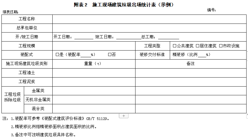 7.2 建筑垃圾每次稱重(計量)后,應(yīng)及時記錄且須按各類施工現(xiàn)場建筑垃圾實際處理情況填寫,并保持記錄的連續(xù)性、真實性和準確性。記錄應(yīng)留存?zhèn)洳?。記錄分為日常記錄表和統(tǒng)計表,具體可參考附錄B表1、2。