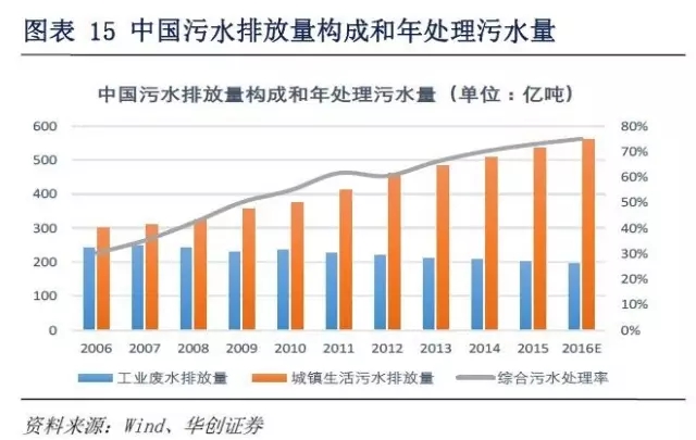 從我國生活污水廠的平均進水濃度分析,生活污泥的產生量大約為:每處理1萬m3的污水會產生5-10t脫水污泥(含水率以80%計)。隨著污水處理能力的快速提高,污水廠出水標準的提升,污泥量也同步大幅增加。截至2016年9月底,全國設市城市、縣累計建成污水處理廠3976座,污水處理能力達1.7億立方米/日,年產生80%含水率的污泥4000多萬噸。預計2017年,我國城鎮(zhèn)污水年處理量將突破600億噸,那么,2017年全國80%濕污泥年產量將超過5000萬噸。