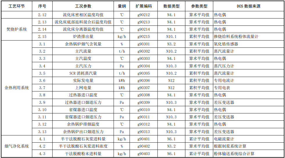 煙氣凈化裝置運(yùn)行和工況傳輸參數(shù)表如下: