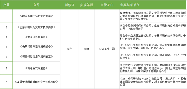 2020年環(huán)境保護(hù)裝備標(biāo)準(zhǔn)項目計劃表——