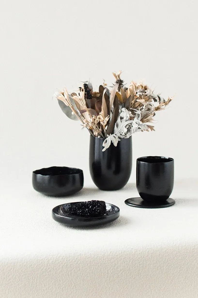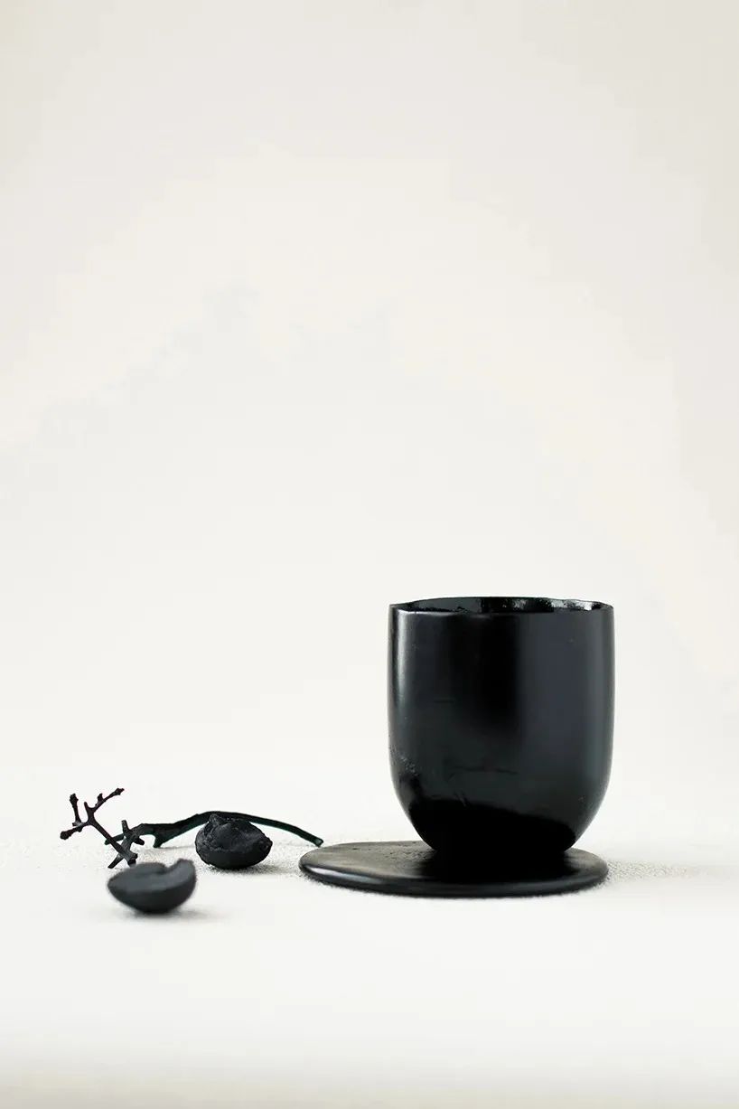 器皿的黑色本體,來(lái)自食物碳化后的本真色彩,這背后也別有一番深意。Araki篤信萬(wàn)物有靈,把食物碳化的過(guò)程,仿佛是為那些被拋棄的生命舉行一場(chǎng)莊嚴(yán)儀式。垃圾焚化后,轉(zhuǎn)世成為美麗的造物,也是這個(gè)系列名字“Anima”(靈魂)的來(lái)源。