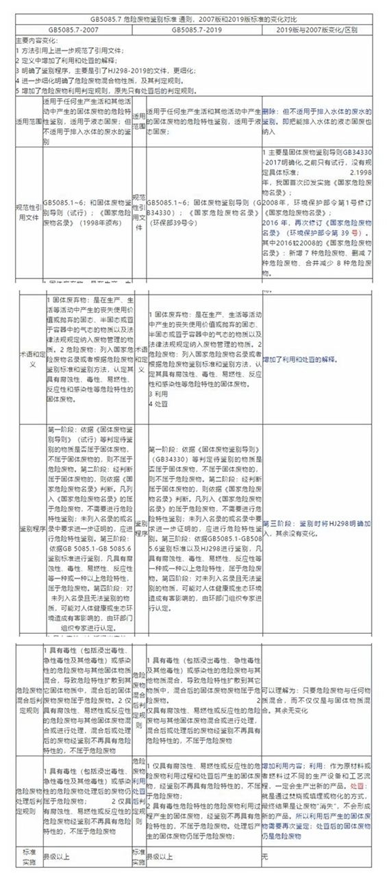 附:GB5085.7 危險廢物鑒別標(biāo)準 通則,2007版和2019版標(biāo)準的變化對比