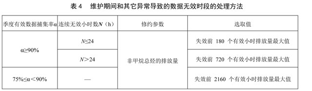 11.2.4 NMHC-CEMS有計劃(質(zhì)量保證/質(zhì)量控制)的維護保養(yǎng)、校準及其它異常導(dǎo)致的數(shù)據(jù)無效時段,該時段污染物排放量按照表4處理,非甲烷總烴濃度和廢氣參數(shù)不修約。