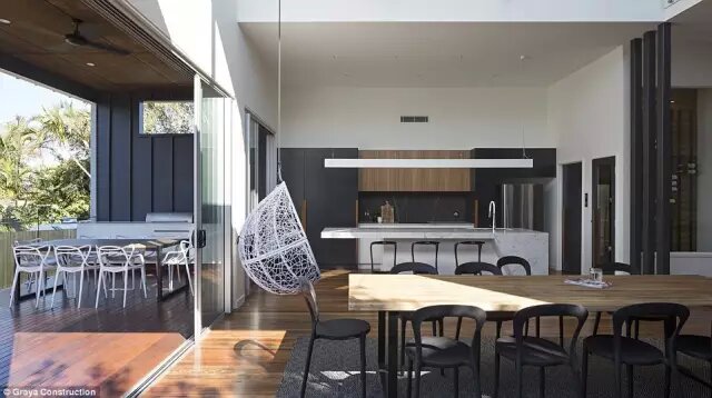 另一面則是深灰色的現(xiàn)代風豪宅