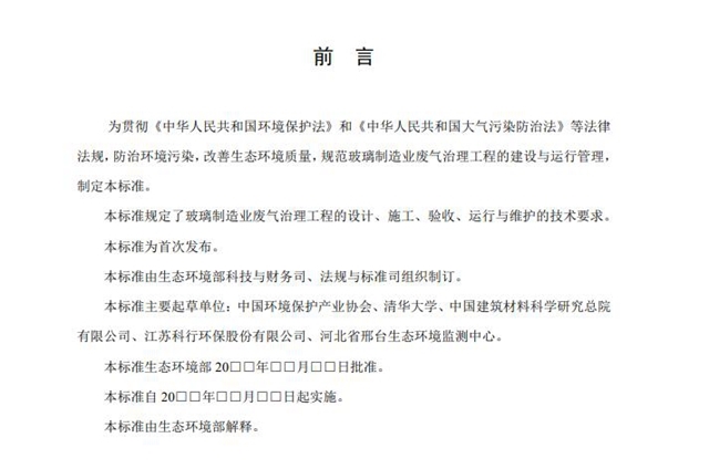 為貫徹《中華人民共和國環(huán)境保護法》,保護環(huán)境,防治環(huán)境污染,我部組織開展了國家環(huán)境保護標(biāo)準(zhǔn)《玻璃制造業(yè)廢氣治理工程技術(shù)規(guī)范》的編制工作。