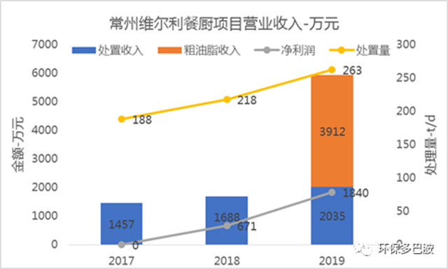 常州項(xiàng)目的盈利,一方面依賴于地方政府及維爾利在當(dāng)?shù)厥者\(yùn)工作的顯著進(jìn)步,公司餐廚垃圾收運(yùn)量從17年的吃不飽到2019年日處理量平均達(dá)263噸/天,以至于公司在2019年底啟動(dòng)了再造一個(gè)常州項(xiàng)目(即常州市餐廚廢棄物物一期工程擴(kuò)建項(xiàng)目,設(shè)計(jì)產(chǎn)能同一期,建成后達(dá)到440噸/天)。