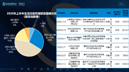 2019年上半年,企業(yè)平均每月中標13個生活垃圾焚燒項目,今年上半年平均每月中標8個焚燒項目,生活垃圾焚燒項目釋放增速放緩。薛濤院長曾在2019年固廢論壇上預(yù)測,2019年是焚燒項目釋放(市場化)最多的一年。2020年上半年焚燒市場得到印證,2020年下半年焚燒市場如何,我們拭目以待。