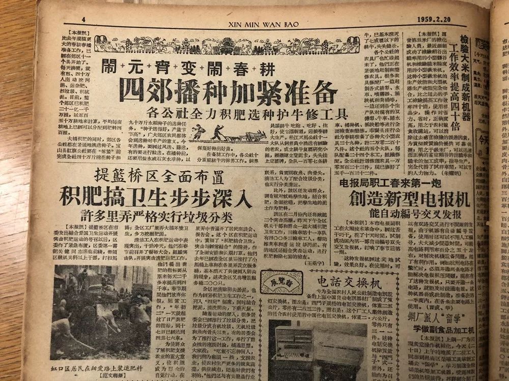 1959年2月20日《新民晚報(bào)》刊載消息“提籃橋區(qū)......許多里弄嚴(yán)格實(shí)行垃圾分類”