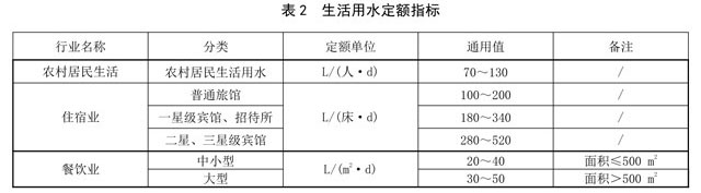 主要參考DB36/T 419來確定用水量,由于農(nóng)村生活用水量因區(qū)域、生活習(xí)慣差異等因素波動(dòng)較大,九江市農(nóng)村地區(qū)生活用水量可按表2選用。