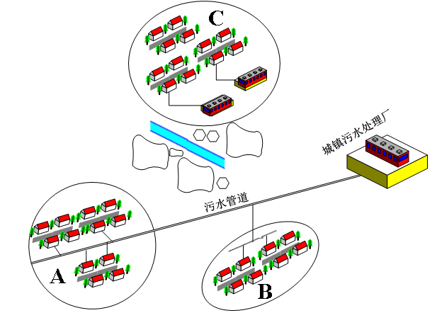 針對(duì)村莊人口數(shù)量較多、污水排放量較大、分布較為集中的情況,對(duì)一定區(qū)域內(nèi)產(chǎn)生的生活污水通過較大范圍的管網(wǎng)進(jìn)行收集,輸送至指定地點(diǎn),并進(jìn)行處理的方式。