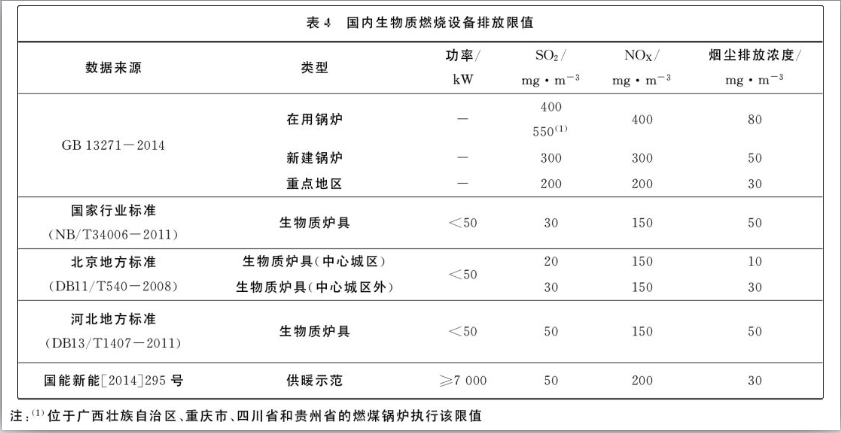 國內(nèi)目前沒有專門針對生物質(zhì)鍋爐排放的國家標準,根據(jù)《鍋爐大氣污染物排放標準》(GB13271-2014)中的有關規(guī)定,生物質(zhì)成型燃料鍋爐參照燃煤鍋爐的排放標準。同時國標還規(guī)定了新建鍋爐排放標準以及重點地區(qū)特別排放標準。國內(nèi)在小型生物質(zhì)爐具生產(chǎn)行業(yè)標準中有對其排放的相關要求。除了行業(yè)標準規(guī)定外,某些地方如北京、河北等對小型生物質(zhì)爐具排放也有各自的地方標準。