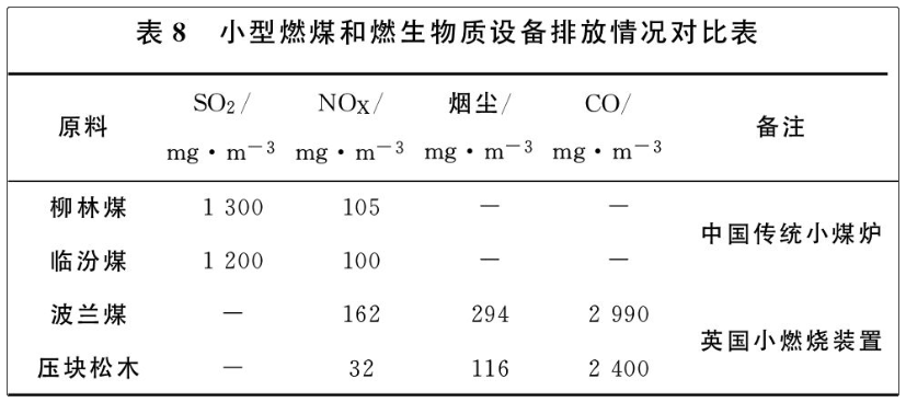 國內(nèi)外現(xiàn)有生物質(zhì)燃燒設備排放情況及與小型煤爐對比