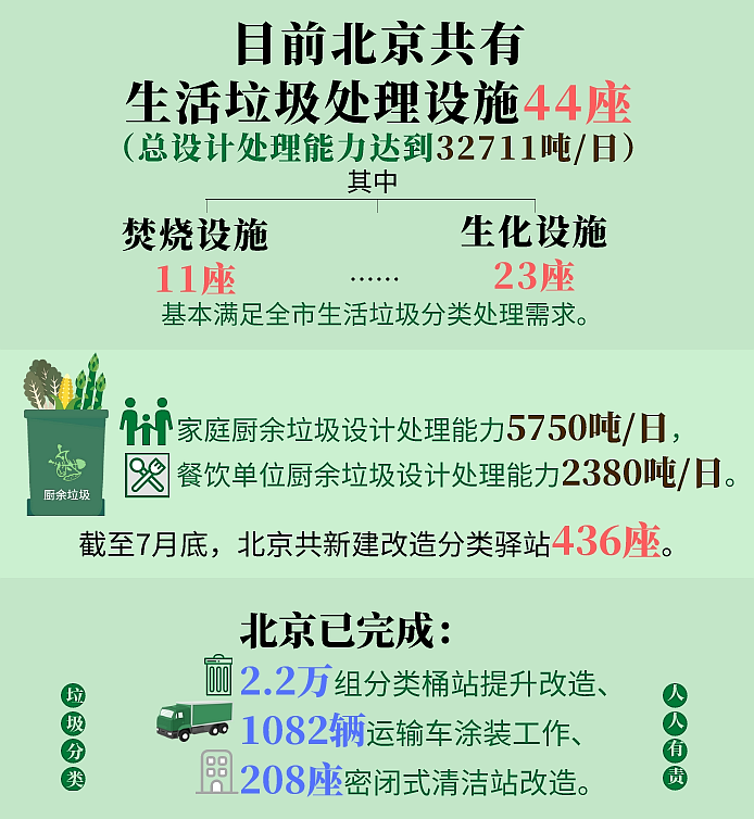 截至7月底,北京市家庭廚余垃圾日均分出量1764噸,較5月增長了137%。