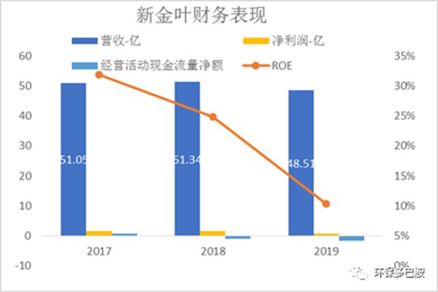 財(cái)務(wù)表現(xiàn)上:盡管在2018年完成業(yè)績(jī)對(duì)賭之后,因技改等原因,新金葉19年凈利潤(rùn)及ROE等主要財(cái)務(wù)指標(biāo)顯著下降,但仍實(shí)現(xiàn)48.5億的營(yíng)收,貢獻(xiàn)了金圓當(dāng)年約60%的營(yíng)收(19年金圓營(yíng)收81.7億)。