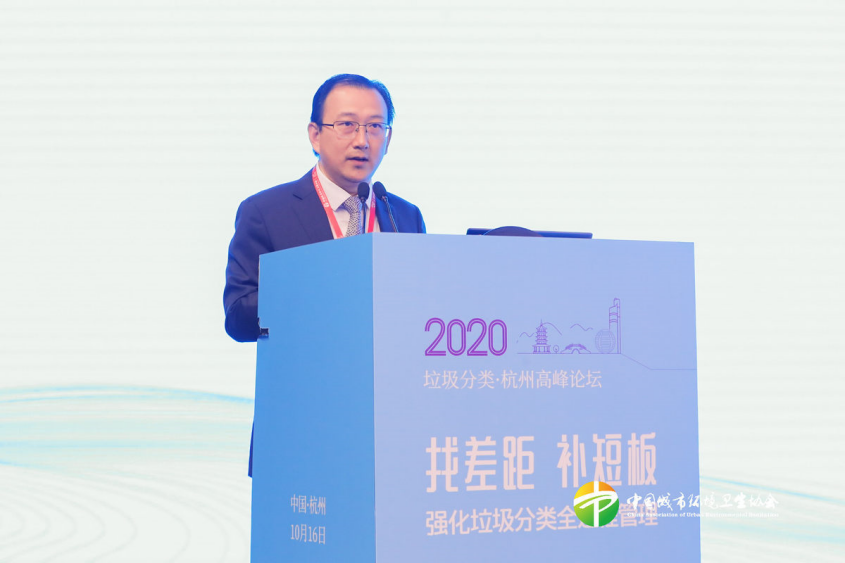杭州市城市管理局局長李磊就“高質(zhì)量全面推進生活垃圾分類‘杭州模式’——杭州市生活垃圾分類回顧與展望”作了發(fā)言,他回顧了杭州垃圾分類工作進程,從垃圾分類“杭州模式”的全面推進、城鄉(xiāng)統(tǒng)籌全域覆蓋、再生資源回收體系轉(zhuǎn)型升級、“五多五少”問題破解等方面介紹了杭州垃圾分類取得的主要成效,剖析了存在問題,并對下一步工作進行了部署和展望。