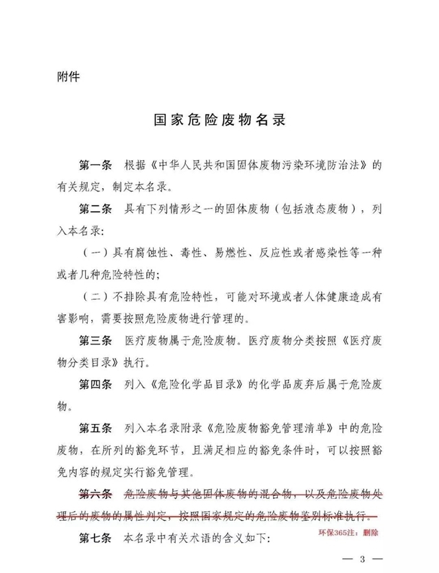 《名錄(修訂稿)》(二次征求意見稿)包括正文、附表《國家危險廢物名錄》、附錄《危險廢物豁免管理清單》。
