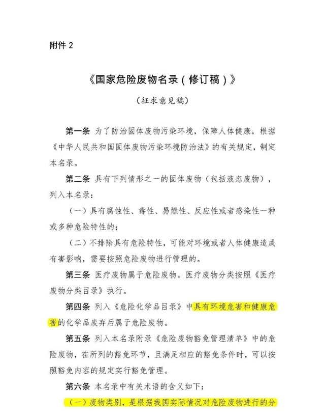 《國家危險廢物名錄(修訂稿)》(二次征求意見稿)