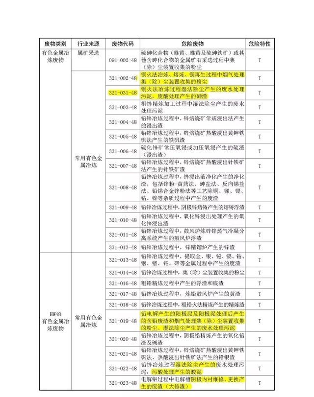 5.修改銅、鉛、鋅冶煉相關(guān)危險廢物的規(guī)定。2016 年版《名錄》對銅、鉛、鋅等有色金屬冶煉過程產(chǎn)生的危險廢物類型及工藝描述不清,本次修訂過程中對該類廢物開展了專項調(diào)查研究,重新梳理并細(xì)化了銅、鉛、鋅冶煉過程產(chǎn)生的危險廢物種類及其工藝來源和危險特性。