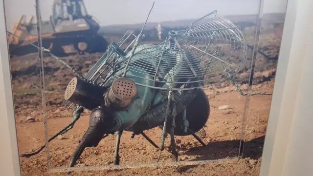 辦公室門口拜訪著一個(gè)利用廢棄物制作的小機(jī)器人模型