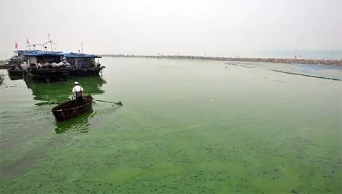 7月29日,記者在巢湖西半湖看到有專(zhuān)業(yè)人員在打撈湖里的藍(lán)藻。藍(lán)藻的出現(xiàn)無(wú)疑證明巢湖有污染。對(duì)此,李煒并不否認(rèn),他說(shuō),巢湖整體水質(zhì)屬于五類(lèi)。
