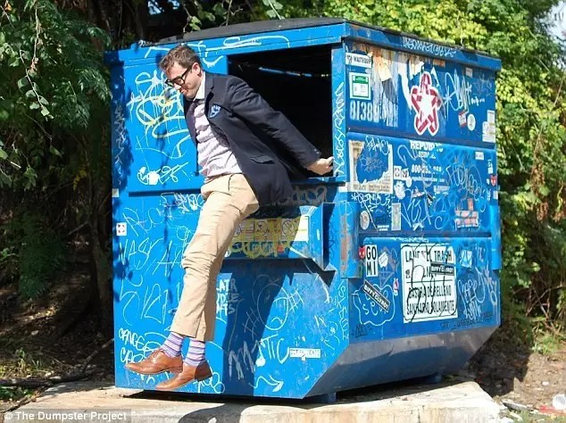 他飛跑去向教務(wù)長(zhǎng)申請(qǐng): “我想把校園草坪上的垃圾箱變成一個(gè)微小的可持續(xù)的家,并到里面去住。” 教務(wù)長(zhǎng)雖然不是很懂這個(gè)教授的腦回路,但是想想垃圾箱也不貴,就同意了。