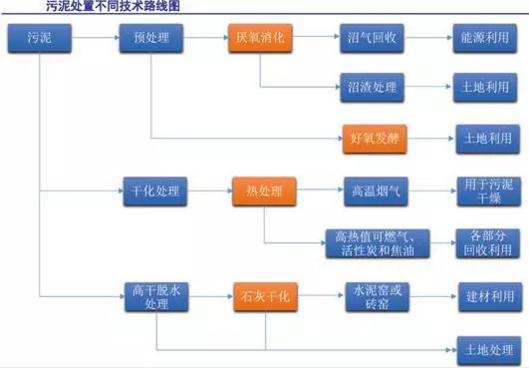 污泥處置不同技術(shù)路線(xiàn)圖