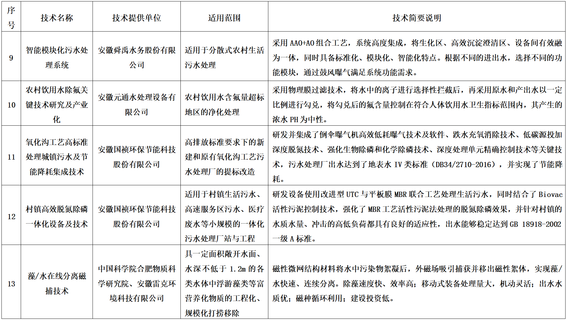 《安徽省水污染防治技術(shù)指導(dǎo)目錄(2020年度)》公布
