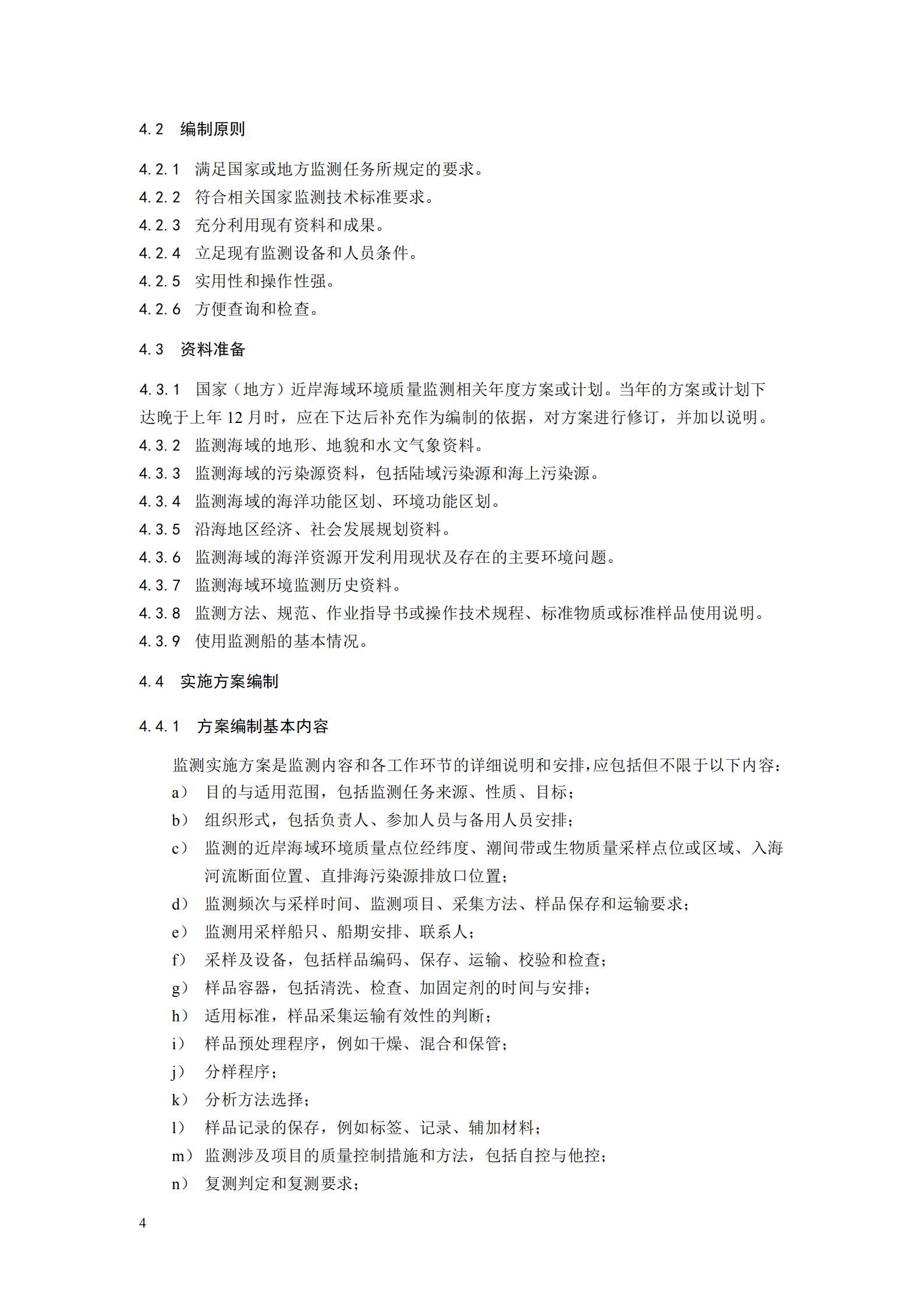 本標準作為修訂后標準的第一部分,針對監(jiān)測實施方案編制、監(jiān)測用船及安全和質(zhì)量保證和質(zhì)量控制基本要求,主要修訂以下幾方面內(nèi)容: